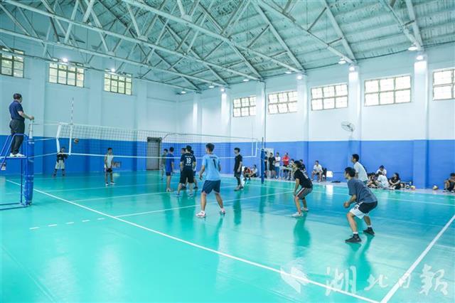 湖北日报讯(记者韩晓玲、通讯员周蓓蓓、吴珊)发球,接球,扣球……9月11日上午10点多,在湖北大学1号体育馆里的排球场地,一场排球赛正在激烈地进行,比赛双方是该校体育学院大三、大四学生。观赛学生中,不时爆发出叫好声和欢呼声。