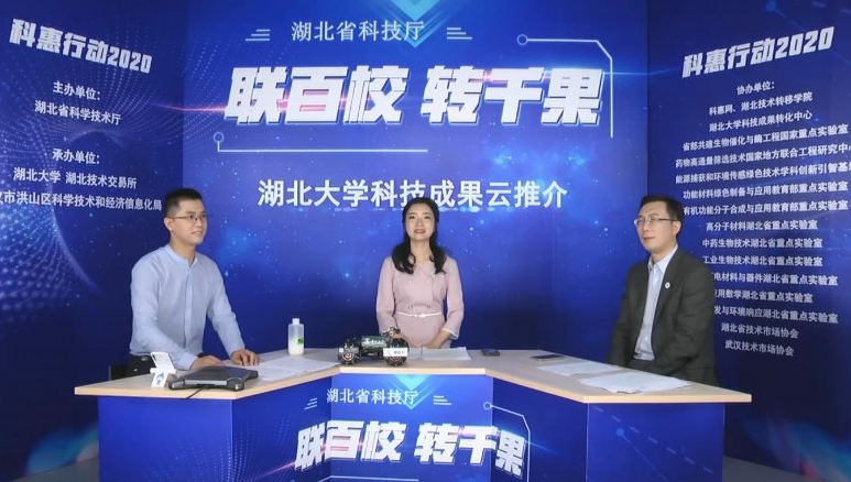 6月13日上午,由湖北省科技厅主办、湖北技术交易所和湖北大学联合承办的“联百校转千果”科惠行动2020高校成果云推介湖北大学专场活动成功举行,长江云、淘宝两大平台同步直播。湖北省科技厅副厅长葛琳,湖北大学副校长王世敏直播带货,8项代表性成果现场重点推介,386项成果在科惠网上集中展示。累计有230人(企业)认领,转化金额达到1.22亿元。