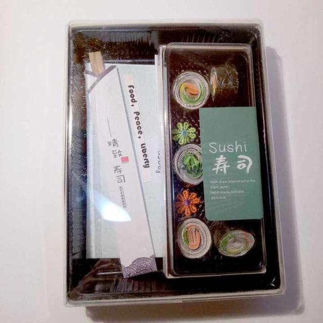 2016级编辑出版专业学生黄钡的书册设计引起全班注意,其中讲述日本饮食文化的书页,卷成寿司模样,与日餐筷子、装饰小花整整齐齐摆在黑色塑料盒中。黄彦老师给这个设计点赞,“这个会获大奖哦!”