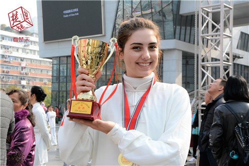 楚天都市报12月2日讯(记者罗欣 通讯员魏医苗 张雯俊)12月2日,湖北大学国际教育学院的7名留学生在副院长胡晓燕的带领下,来到武汉工人文化宫,参加2017年武汉职工健身气功表演赛。身着太极服的他们一出场便引来现场观众的掌声和喝彩,并以8.8分的全场最高分在30支参赛队伍中脱颖而出捧得金奖。